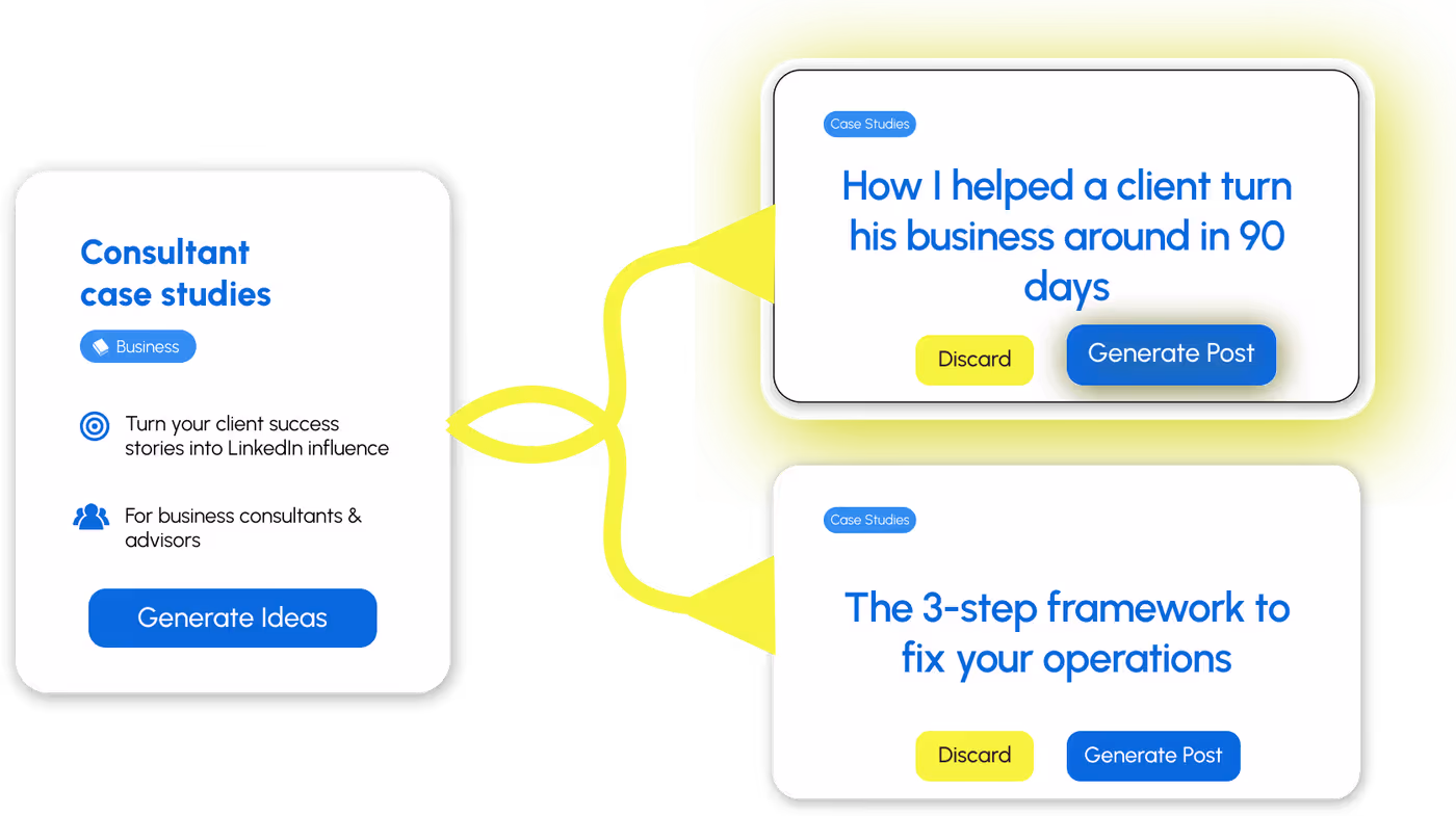 "Just generating topics for LinkedIn posts according to a theme is an amazing tool. I spend hours in a week to just figure out what to post and sometimes just give up because nothing good comes up. This would save a ton of time!"